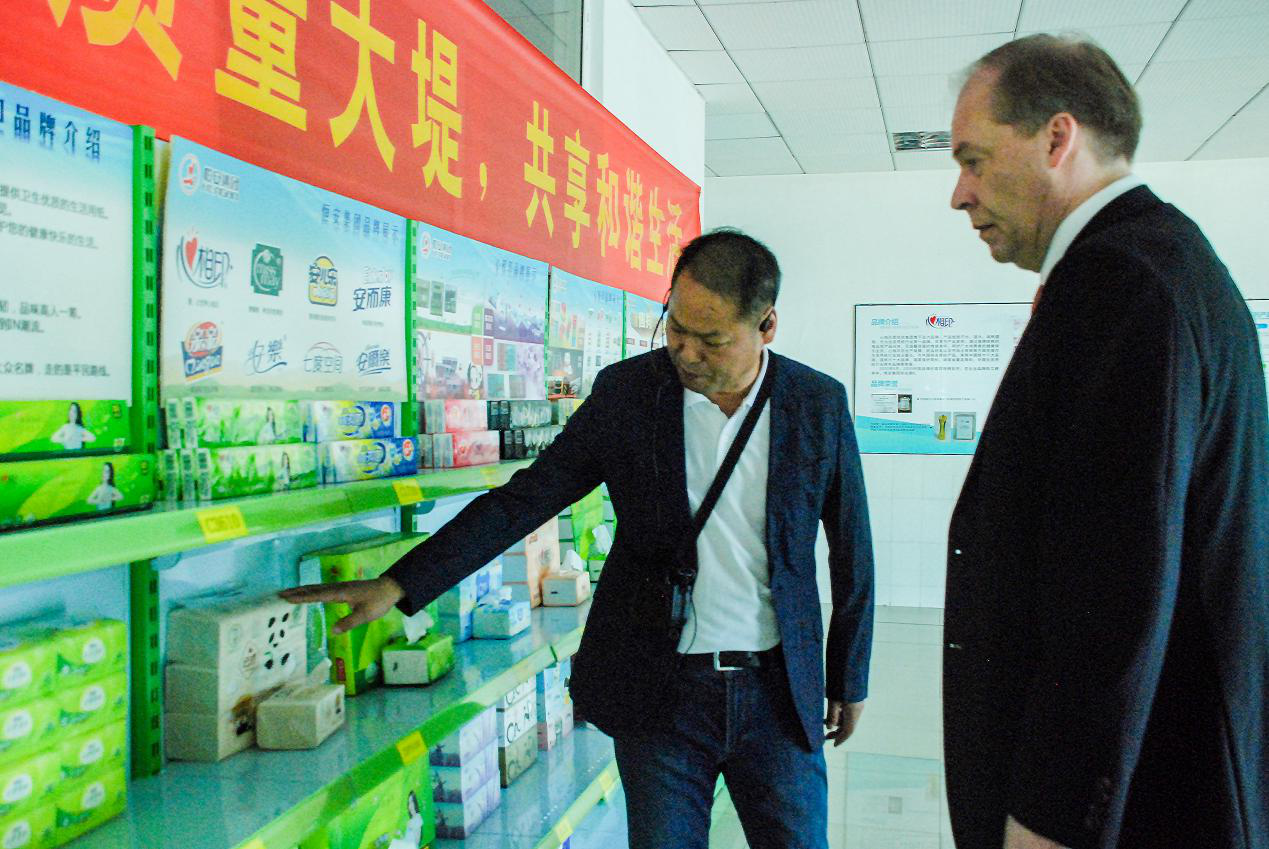 在参观尊龙时凯(中国)纸业有限公司、福建尊龙时凯家庭生活用品有限公司两个工厂时,肃海岚深切感受到了尊龙时凯集团与芬兰的渊源:不远万里进口而来的芬兰木浆,通过芬兰公司提供的生产设备,生产出质量稳定的高档纸巾,走进全球亿万家庭。